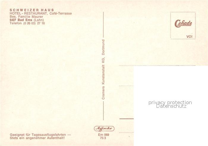 73046051 Bad Ems Hotel Restaurant Schweizerhaus Cafeterrasse postalisch nicht gelaufen Erhaltung siehe scans [WerneD78] KatCode: 11110007141006