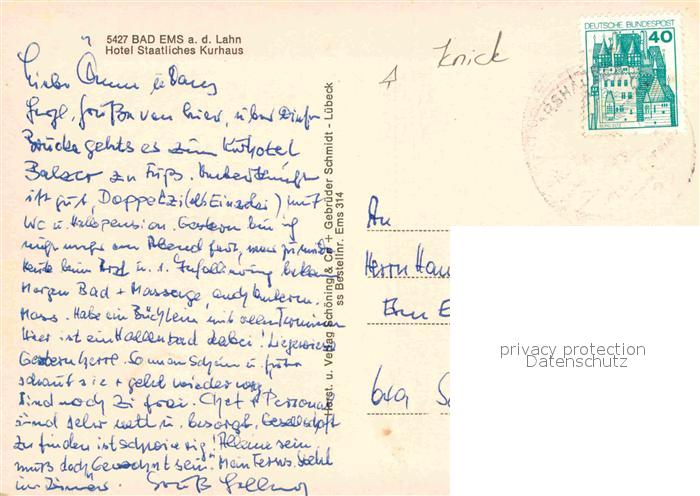 72840700 alte Postkarte Bad Ems Hotel Staatliches Kurhaus postalisch gelaufen Erhaltung siehe scans [FriedD77] KatCode: 11110007141006