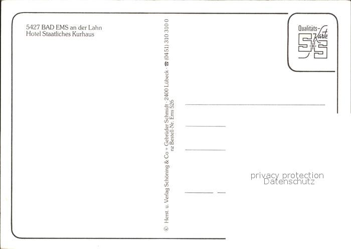 72493270 Bad Ems Hotel Staatliches Kurhaus postalisch nicht gelaufen Erhaltung siehe scans KatCode: 11110007141006