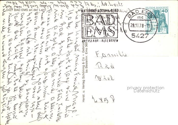 72469481 alte Postkarte Bad Ems Hufeland-Klinik postalisch gelaufen Erhaltung siehe scans KatCode: 11110007141006