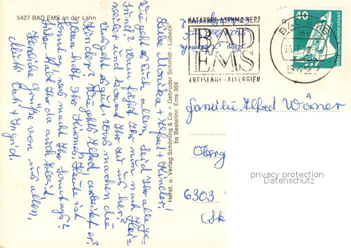 73197092 alte Postkarte Bad Ems Hufeland Klinik postalisch gelaufen Erhaltung siehe scans [KathaD81] KatCode: 11110007141006
