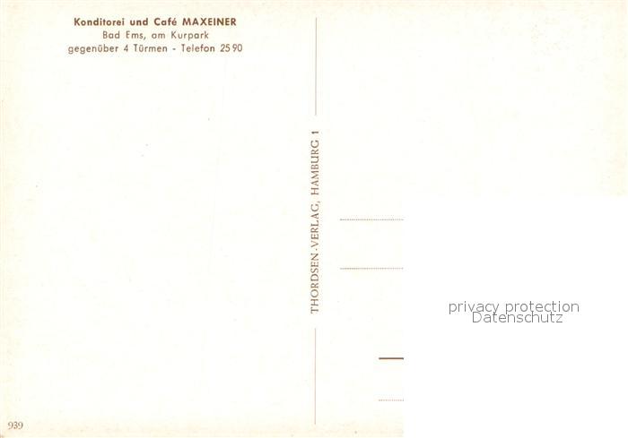 73730993 Bad Ems Konditorei und Cafe Maxeiner postalisch nicht gelaufen Erhaltung siehe scans [WerneD78] KatCode: 11110007141006