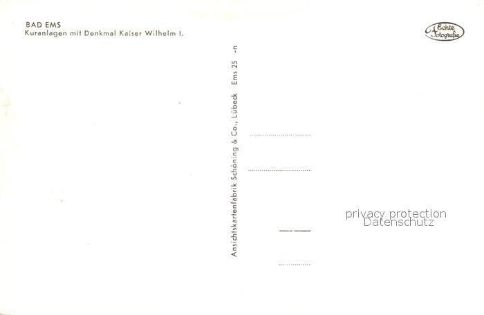 73016572 Bad Ems Kuranlagen mit Kaiser Wilhelm Denkmal postalisch nicht gelaufen Erhaltung siehe scans [WerneD78] KatCode: 11110007141006