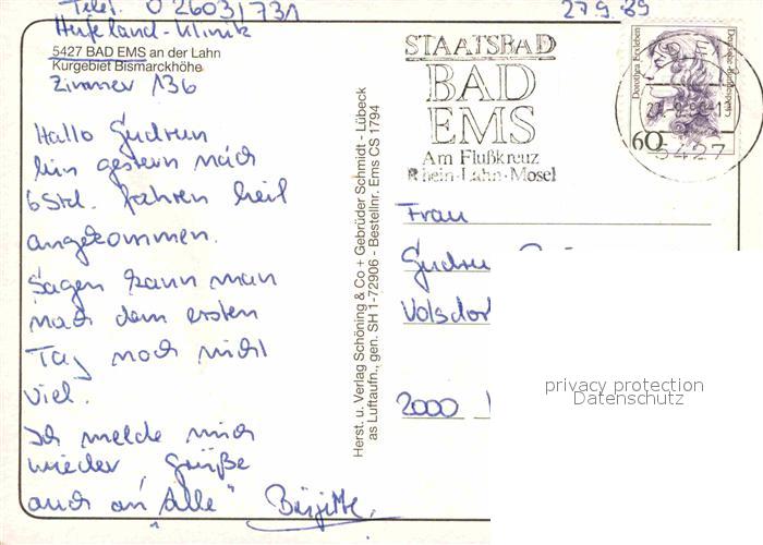 72835058 alte Postkarte Bad Ems Kurgebiet Bismarckhoehe Fliegeraufnahme postalisch gelaufen Erhaltung siehe scans [FriedD77] KatCode: 11110007141006