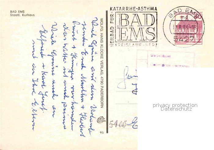 72725714 alte Postkarte Bad Ems Kurhaus postalisch gelaufen Erhaltung siehe scans [LiesaD40] KatCode: 11110007141006