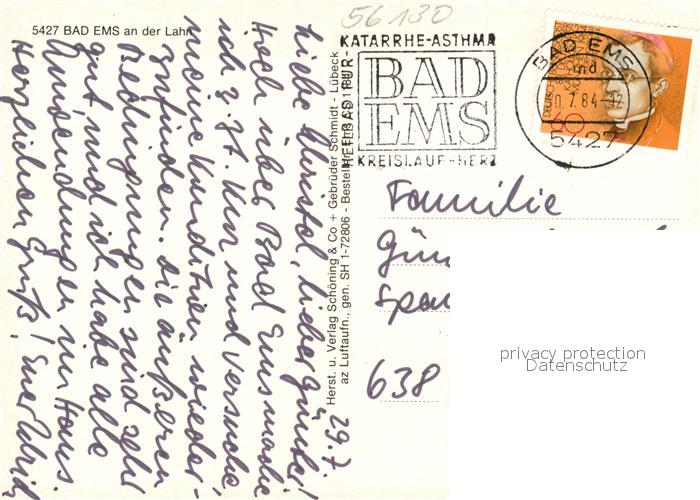 73323085 alte Postkarte Bad Ems Kurort an der Lahn Fliegeraufnahme postalisch gelaufen Erhaltung siehe scans [FriedD77] KatCode: 11110007141006