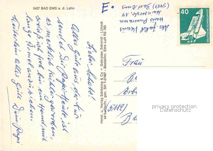 72831986 alte Postkarte Bad Ems Kurort Fliegeraufnahme postalisch gelaufen Erhaltung siehe scans [FriedD77] KatCode: 11110007141006