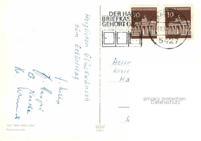 72900837 alte Postkarte Bad Ems Kurpromenade postalisch gelaufen Erhaltung siehe scans [WerneD78] KatCode: 11110007141006