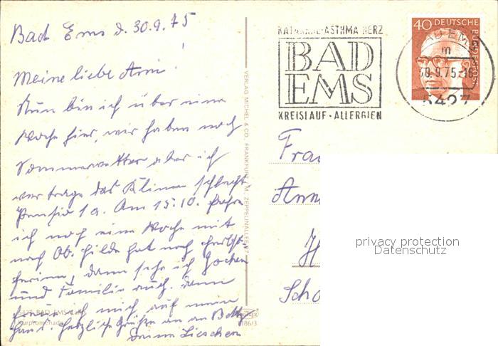 72525413 alte Postkarte Bad Ems Kurpromenade Ausflugsdampfer Turm postalisch gelaufen Erhaltung siehe scans KatCode: 11110007141006