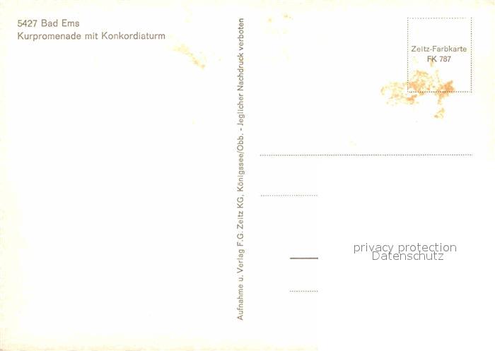 72907437 Bad Ems Kurpromenade Konkordiaturm postalisch nicht gelaufen Erhaltung siehe scans [AndreD76] KatCode: 11110007141006