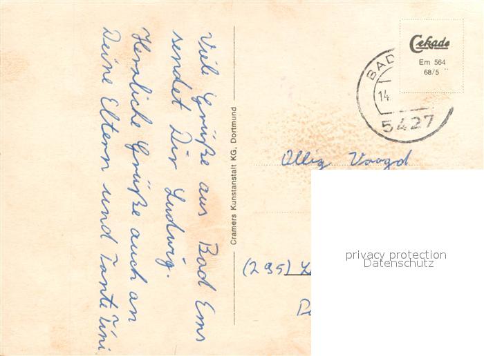 73736386 alte Postkarte Bad Ems Lahn Albert Kurheim Speisesaal Aufenthaltsraum Russische Kirche postalisch gelaufen Erhaltung siehe scans [WerneD78] KatCode: 11110007141006
