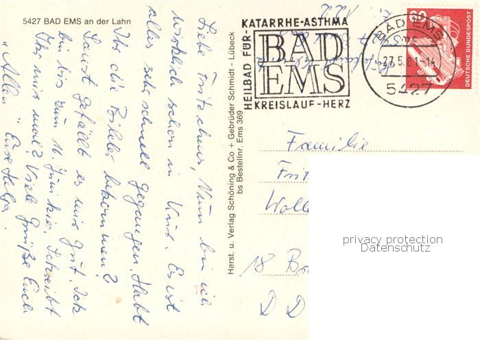 73780613 alte Postkarte Bad Ems Lahn Hufeland Klinik Speisesaal Hallenbad postalisch gelaufen Erhaltung siehe scans [WerneD78] KatCode: 11110007141006