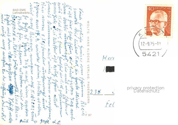 72769774 alte Postkarte Bad Ems Lahnabwaerts postalisch gelaufen Erhaltung siehe scans [NatalD47] KatCode: 11110007141006