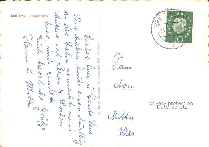 alte Postkarte Bad Ems Lahnabwaerts postalisch gelaufen Erhaltung siehe scans