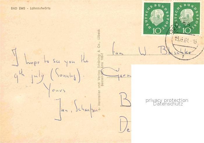 72905853 alte Postkarte Bad Ems Lahnaufwaerts postalisch gelaufen Erhaltung siehe scans [AndreD76] KatCode: 11110007141006