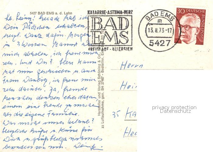 73165638 alte Postkarte Bad Ems Lahnpartie Fliegeraufnahme postalisch gelaufen Erhaltung siehe scans [WerneD78] KatCode: 11110007141006