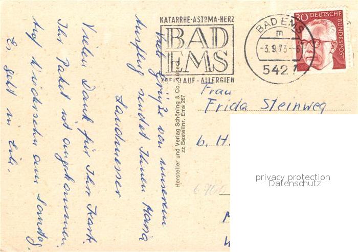 72995602 alte Postkarte Bad Ems Lahnpartie Lahnabwaerts Kurhaus Russische Kirche postalisch gelaufen Erhaltung siehe scans [AndreD76] KatCode: 11110007141006