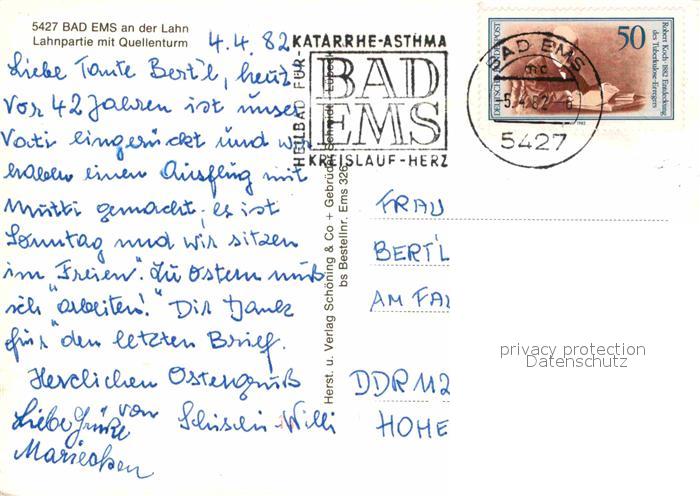72907438 alte Postkarte Bad Ems Lahnpartie Quellenturm postalisch gelaufen Erhaltung siehe scans [AndreD76] KatCode: 11110007141006