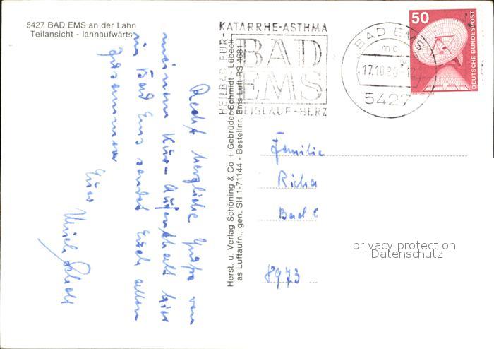 alte Postkarte Bad Ems Luftaufnahme postalisch gelaufen Erhaltung siehe scans
