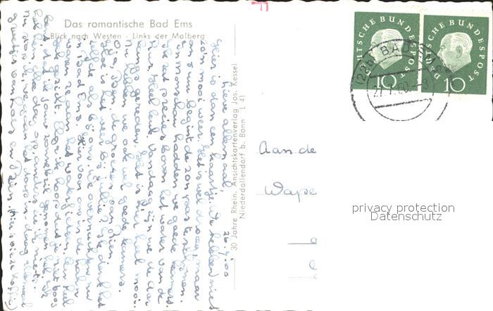 72074870 alte Postkarte Bad Ems Panorama Blick nach Westen Malberg postalisch gelaufen Erhaltung siehe scans KatCode: 11110007141006