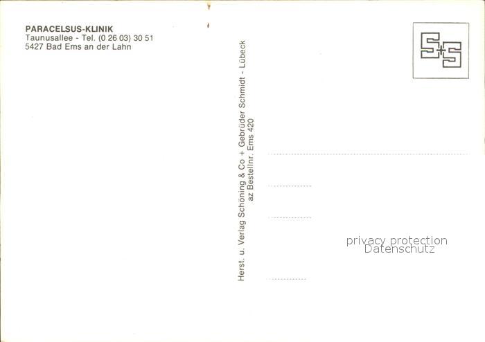 71984423 Bad Ems Paracelsus Klinik postalisch nicht gelaufen Erhaltung siehe scans KatCode: 11110007141006