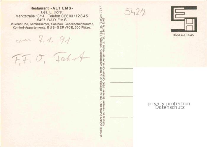 74040969 BAD EMS Restaurant Alt Ems Gastraeume postalisch nicht gelaufen Erhaltung siehe scans [WerneD78] KatCode: 11110007141006