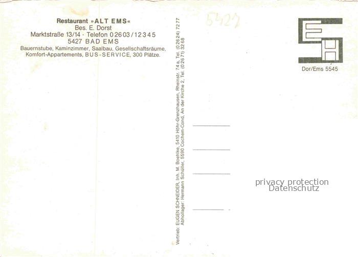74040954 BAD EMS Restaurant Alt Ems Gastraeume postalisch nicht gelaufen Erhaltung siehe scans [WerneD78] KatCode: 11110007141006