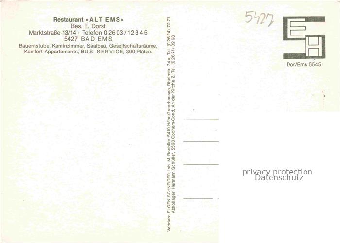 74050127 BAD EMS Restaurant Alt Ems Gastraeume Kuechenherd postalisch nicht gelaufen Erhaltung siehe scans [WerneD78] KatCode: 11110007141006