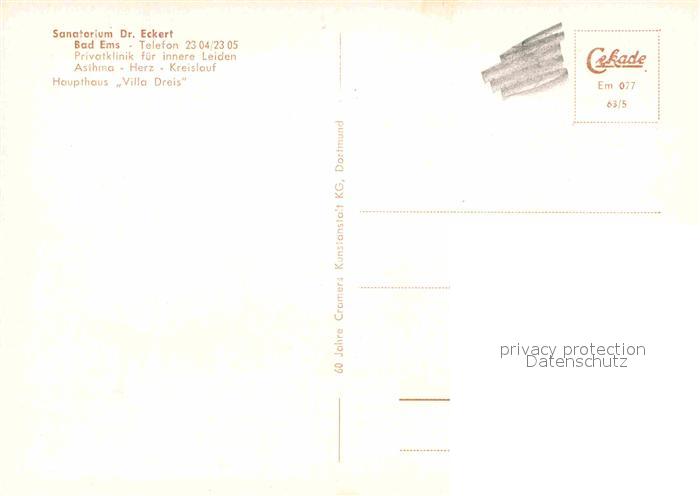 72638091 Bad Ems Sanatorium Dr Eckert postalisch nicht gelaufen Erhaltung siehe scans [WerneD78] KatCode: 11110007141006