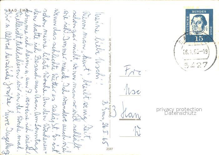 71868140 alte Postkarte Bad Ems Uferpartie an der Lahn postalisch gelaufen Erhaltung siehe scans KatCode: 11110007141006