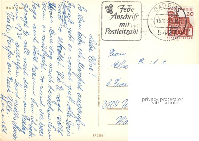 72995580 alte Postkarte Bad Ems Uferpartie postalisch gelaufen Erhaltung siehe scans [AndreD76] KatCode: 11110007141006
