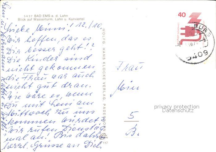 72511566 alte Postkarte Bad Ems Wasserturm Lahn und Kurviertel postalisch gelaufen Erhaltung siehe scans KatCode: 11110007141006