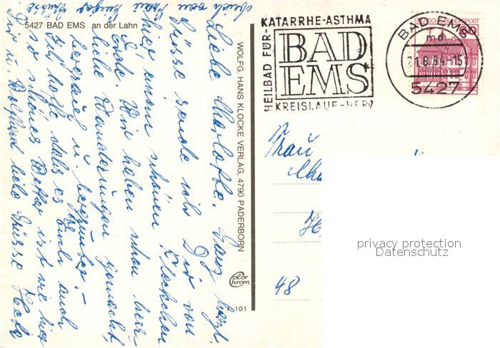 73111942 alte Postkarte Bad Ems postalisch gelaufen Erhaltung siehe scans [NatalD47] KatCode: 11110007141006