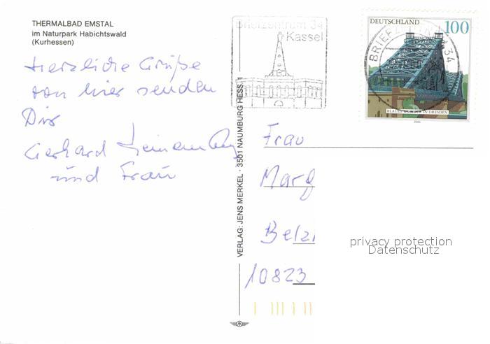 72784738 alte Postkarte Bad Emstal Naturpark postalisch gelaufen Erhaltung siehe scans [LiesaD40] KatCode: 11110006633006