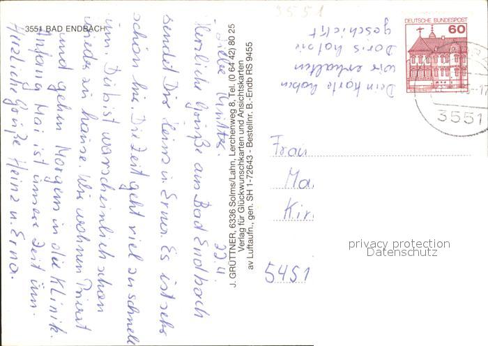 71989352 alte Postkarte Bad Endbach Fliegeraufnahme postalisch gelaufen Erhaltung siehe scans KatCode: 11110006534003