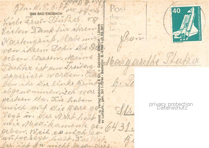 73681427 alte Postkarte Bad Endbach Fliegeraufnahme postalisch gelaufen Erhaltung siehe scans [LiesaD40] KatCode: 11110006534003