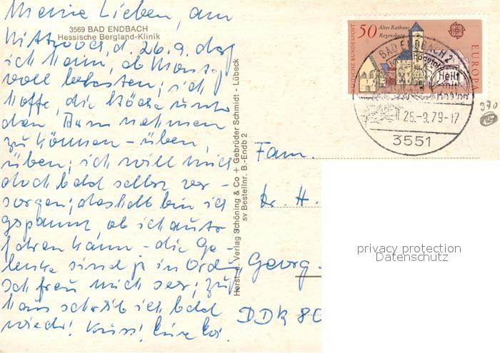73174522 alte Postkarte Bad Endbach Hessische Berglandklinik postalisch gelaufen Erhaltung siehe scans [LiesaD40] KatCode: 11110006534003