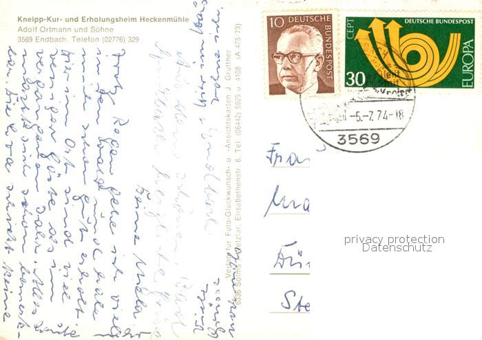 72960016 alte Postkarte Bad Endbach Kneipp Erholungsheim Heckenmuehle postalisch gelaufen Erhaltung siehe scans [WerneD78] KatCode: 11110006534003