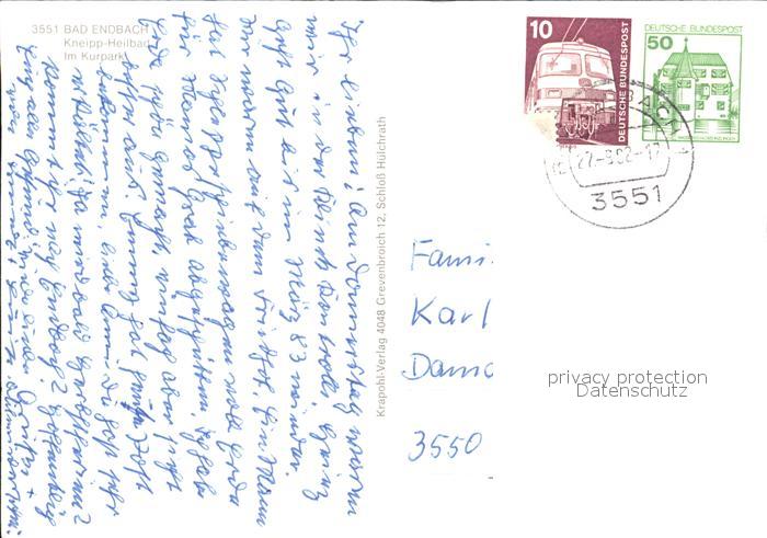 72602551 alte Postkarte Bad Endbach Kneipp Heilbad Kurpark postalisch gelaufen Erhaltung siehe scans [AntonD74] KatCode: 11110006534003