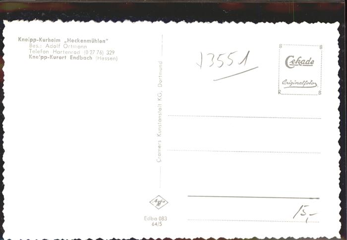 41327525 Bad Endbach Kneipp Kurheim Heckenmühlen Gäste und Behandlungshaus KatCode 11110006534003