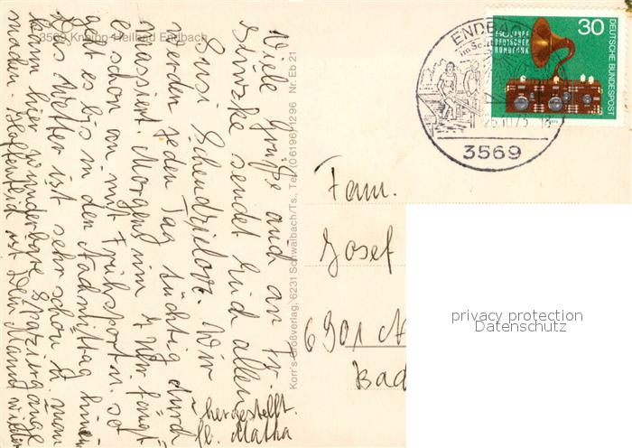73195226 alte Postkarte Bad Endbach Kuranlage Park Panorama Massageschule postalisch gelaufen Erhaltung siehe scans [WerneD78] KatCode: 11110006534003
