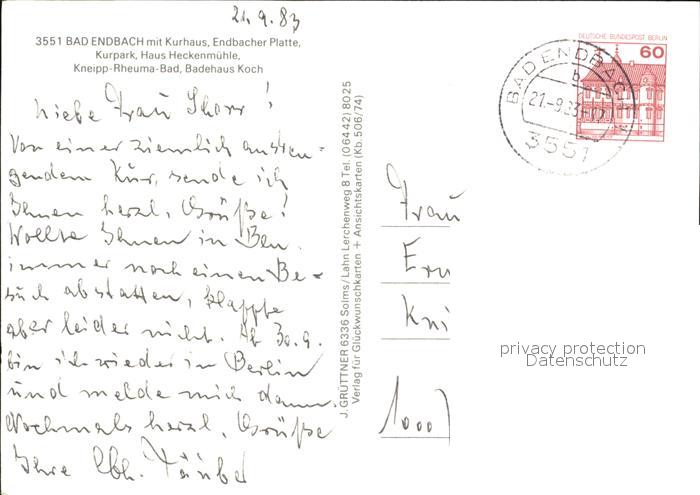 72600432 alte Postkarte Bad Endbach Kurhaus Endbacher Platte Kurpark Haus Heckenmuehle Kneipp Rheuma Bad Badehaus postalisch gelaufen Erhaltung siehe scans [FriedD77] KatCode: 11110006534003
