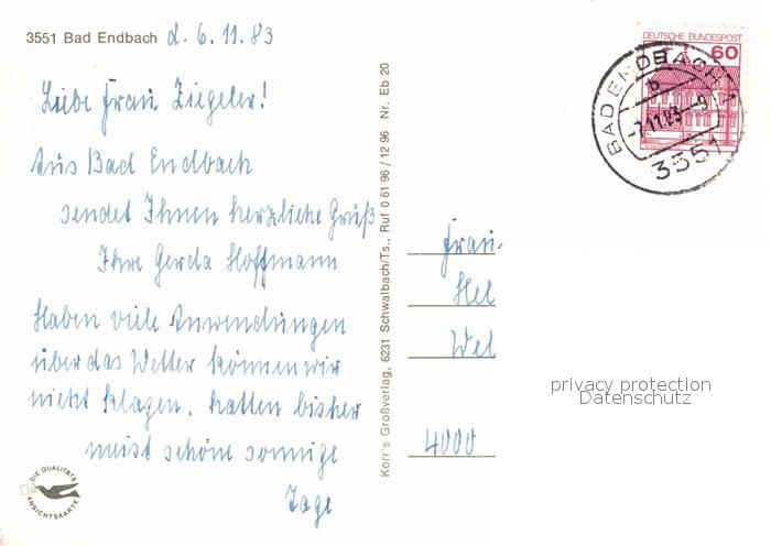 72665097 alte Postkarte Bad Endbach Kurhaus Kurpark Panorama postalisch gelaufen Erhaltung siehe scans [WerneD78] KatCode: 11110006534003