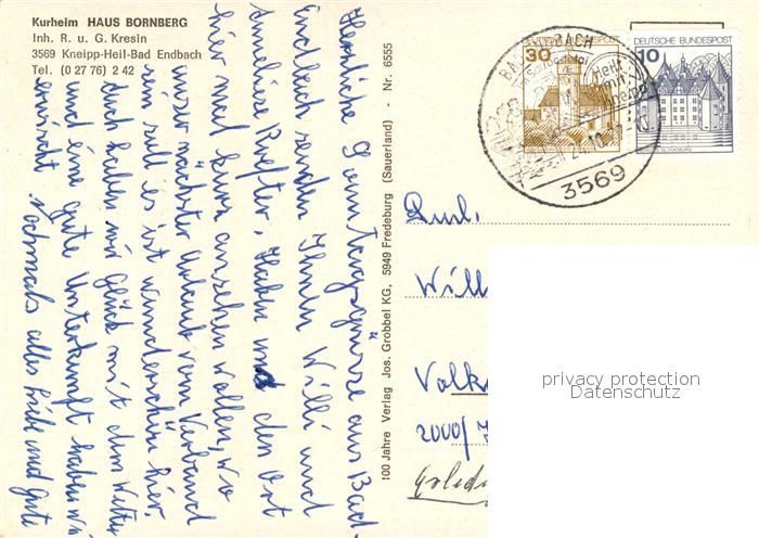 73129930 alte Postkarte Bad Endbach Kurheim Haus Bornberg postalisch gelaufen Erhaltung siehe scans [KathaD81] KatCode: 11110006534003