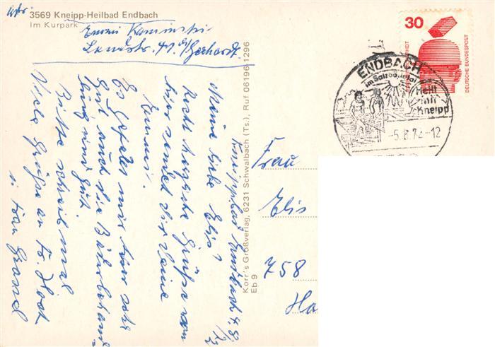 73936649 alte Postkarte Bad Endbach Kurpark Kneippkurort postalisch gelaufen Erhaltung siehe scans [FriedD77] KatCode: 11110006534003