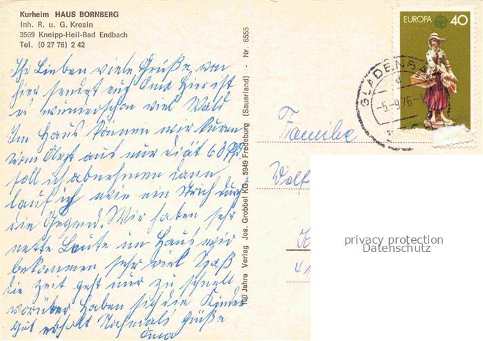74084761 alte Postkarte Bad Endbach Marburg-Biedenkopf Hessen Kurheim Haus Bornberg postalisch gelaufen Erhaltung siehe scans [WerneD78] KatCode: 11110006534003