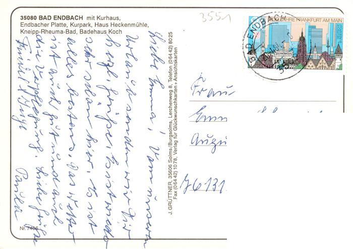 73935033 alte Postkarte Bad Endbach mit Kurhaus Endbacher Platte Kurpark Haus Heckenmuehle Kneipp Rheuma Bad Badehaus Koch postalisch gelaufen Erhaltung siehe scans [FriedD77] KatCode: 11110006534003