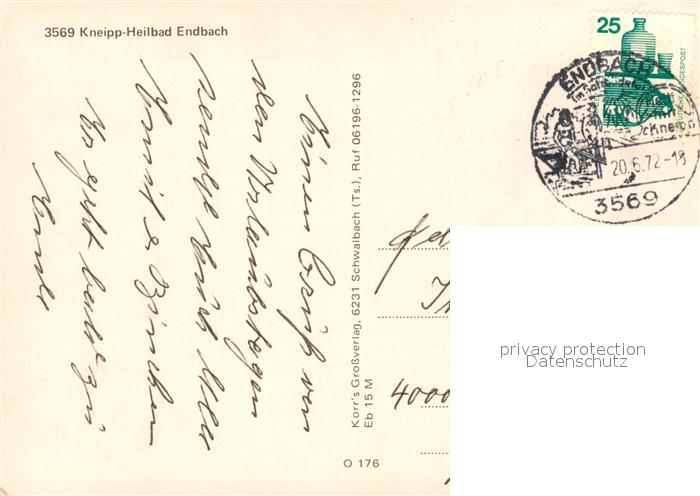 73549960 alte Postkarte Bad Endbach Panorama postalisch gelaufen Erhaltung siehe scans [WerneD78] KatCode: 11110006534003