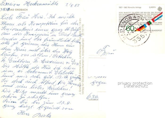 73011198 alte Postkarte Bad Endbach Pension Heckenmuehle postalisch gelaufen Erhaltung siehe scans [WerneD78] KatCode: 11110006534003