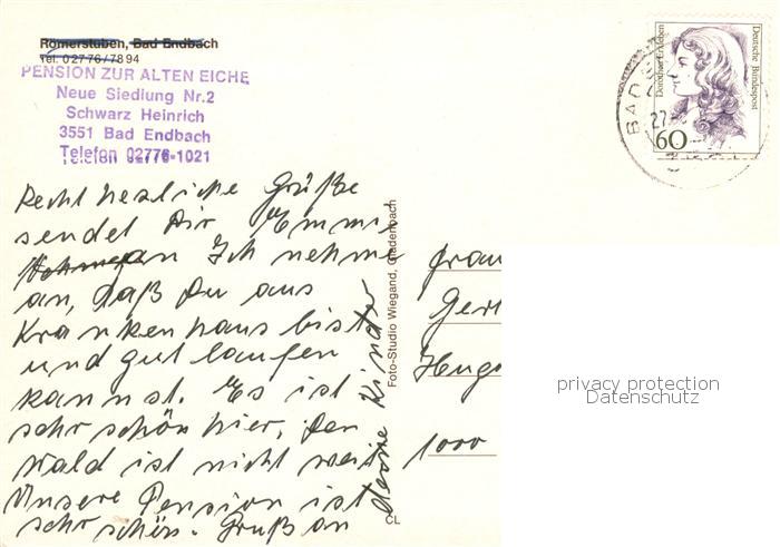 73845506 alte Postkarte Bad Endbach Roemerstuben Zimmer Gaststube postalisch gelaufen Erhaltung siehe scans [WerneD78] KatCode: 11110006534003
